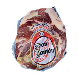 Paleta de cerdo cruzada Duroc Jersey, con una curación mínima de 14 meses. Dulce y de extraordinaria calidad.